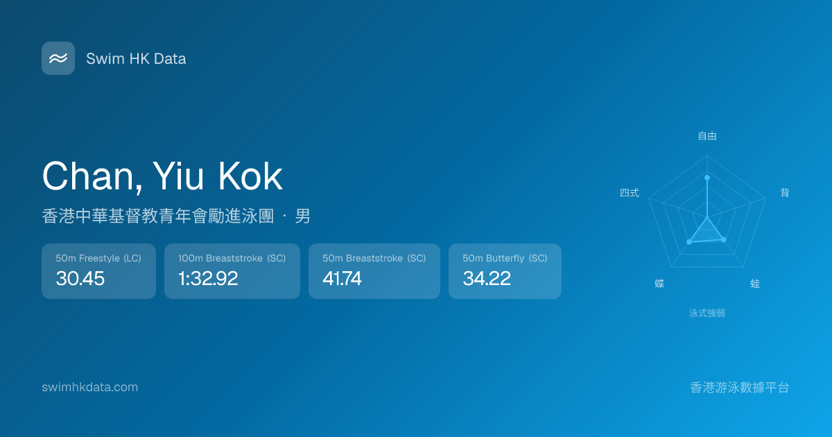 此圖表根據你所有比賽成績計算,顯示你在各泳式的相對強弱,僅供參考。繼續努力,每一次練習都會讓你更快更強!💪