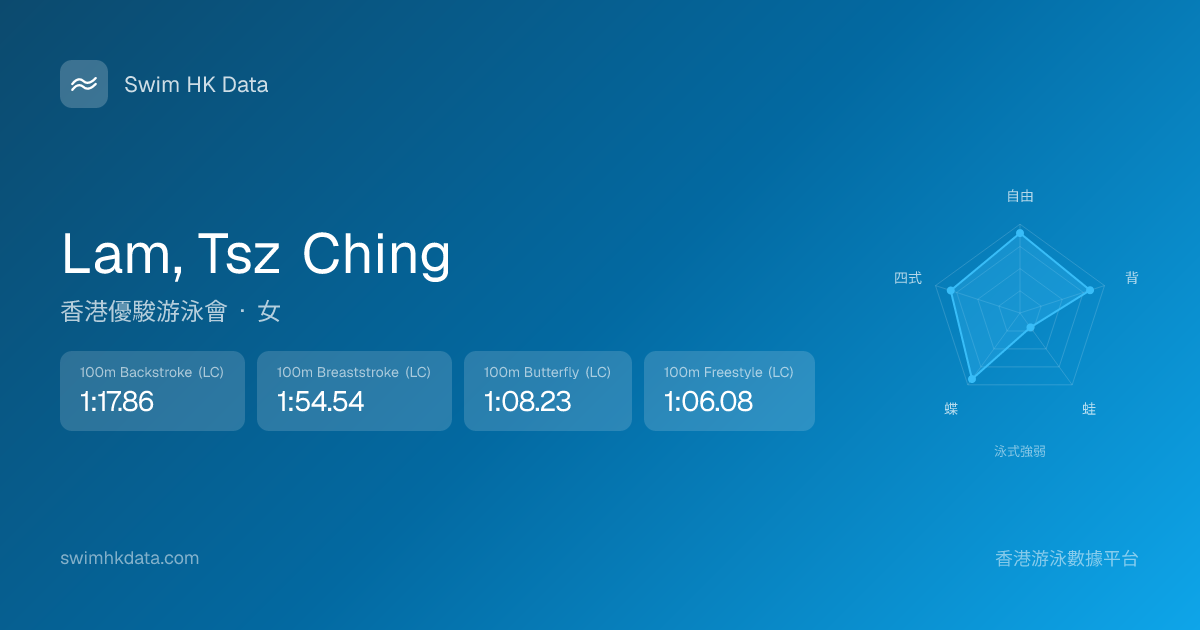 此圖表根據你所有比賽成績計算,顯示你在各泳式的相對強弱,僅供參考。繼續努力,每一次練習都會讓你更快更強!💪