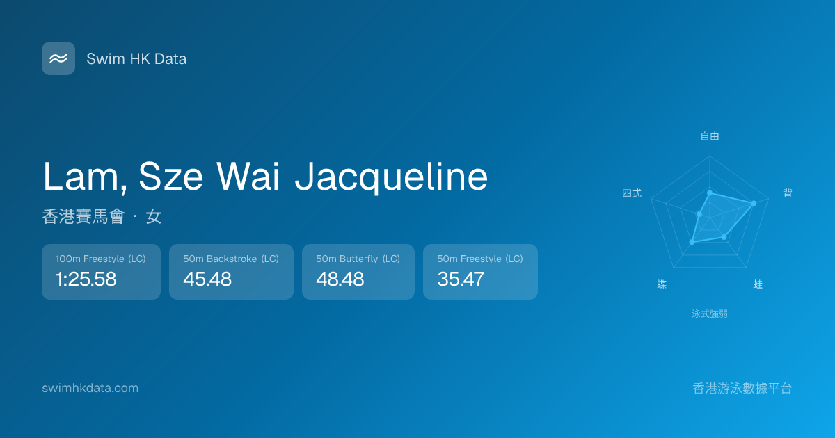 此圖表根據你所有比賽成績計算,顯示你在各泳式的相對強弱,僅供參考。繼續努力,每一次練習都會讓你更快更強!💪