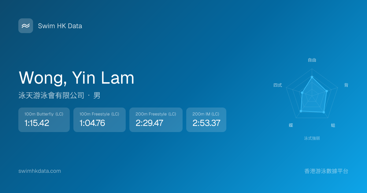 此圖表根據你所有比賽成績計算,顯示你在各泳式的相對強弱,僅供參考。繼續努力,每一次練習都會讓你更快更強!💪
