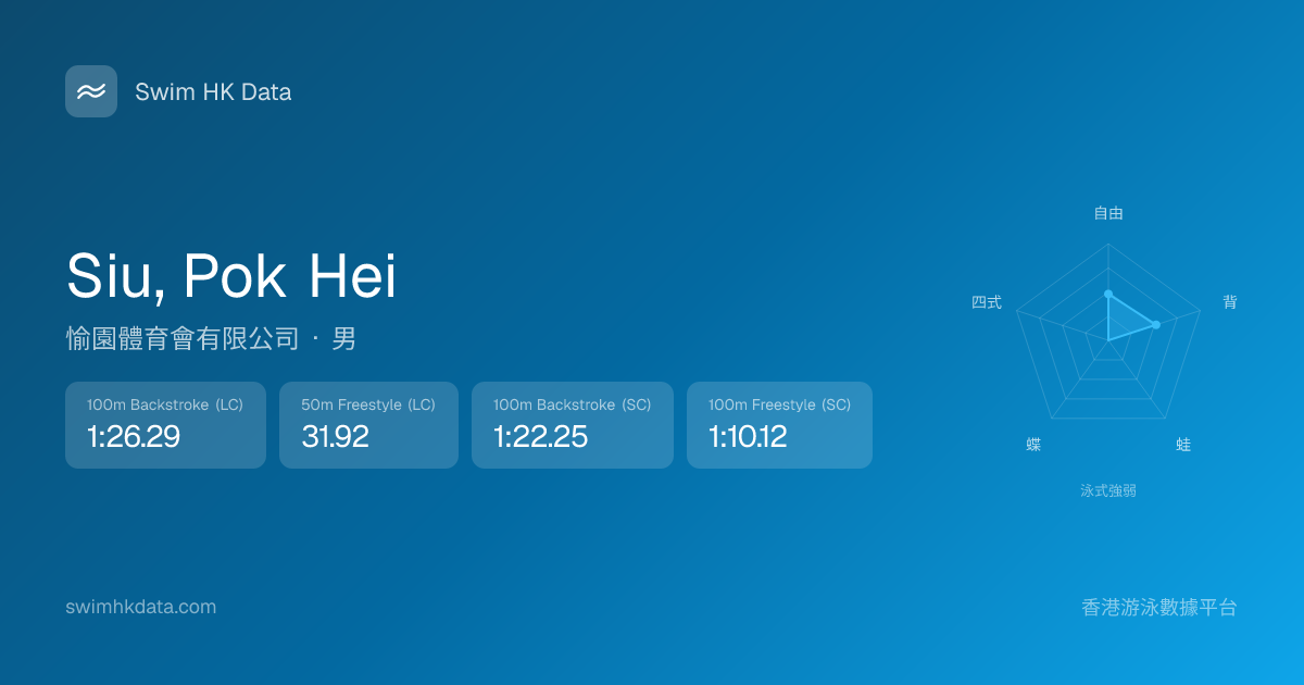 此圖表根據你所有比賽成績計算,顯示你在各泳式的相對強弱,僅供參考。繼續努力,每一次練習都會讓你更快更強!💪