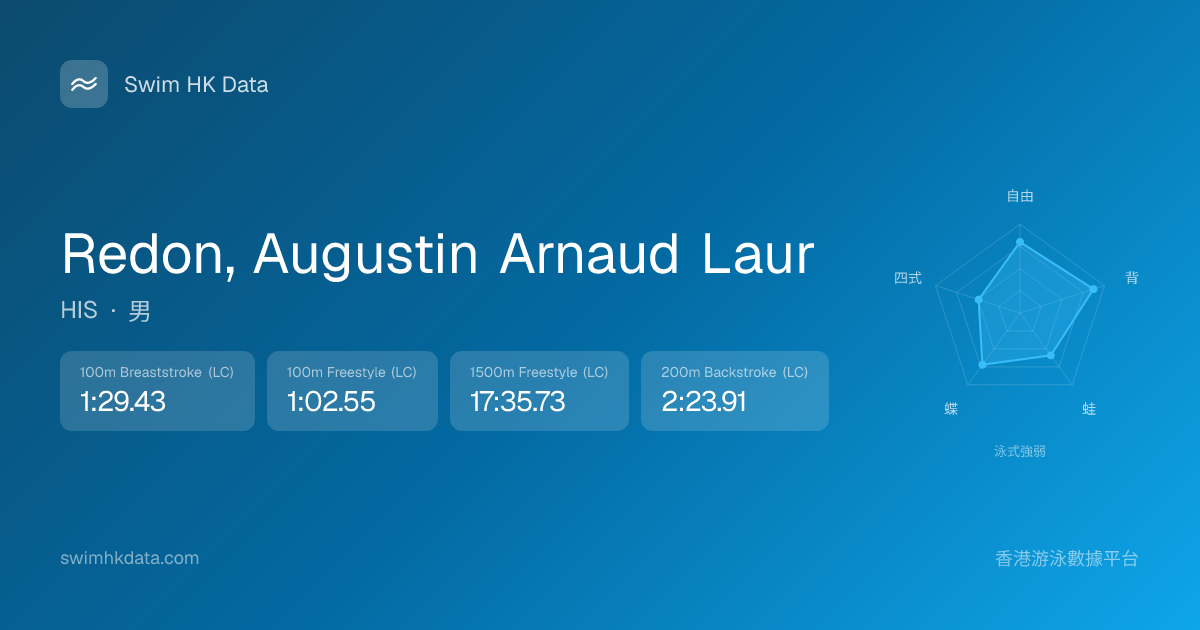 此圖表根據你所有比賽成績計算,顯示你在各泳式的相對強弱,僅供參考。繼續努力,每一次練習都會讓你更快更強!💪