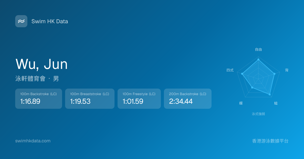 此圖表根據你所有比賽成績計算,顯示你在各泳式的相對強弱,僅供參考。繼續努力,每一次練習都會讓你更快更強!💪