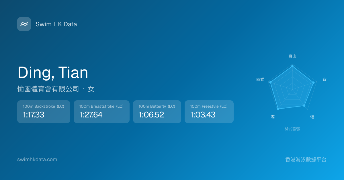 此圖表根據你所有比賽成績計算,顯示你在各泳式的相對強弱,僅供參考。繼續努力,每一次練習都會讓你更快更強!💪