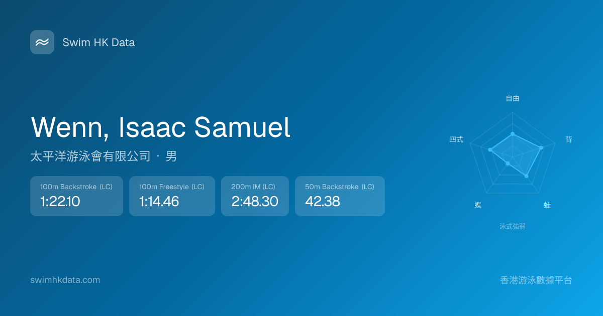 此圖表根據你所有比賽成績計算,顯示你在各泳式的相對強弱,僅供參考。繼續努力,每一次練習都會讓你更快更強!💪