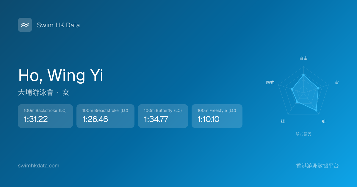 此圖表根據你所有比賽成績計算,顯示你在各泳式的相對強弱,僅供參考。繼續努力,每一次練習都會讓你更快更強!💪