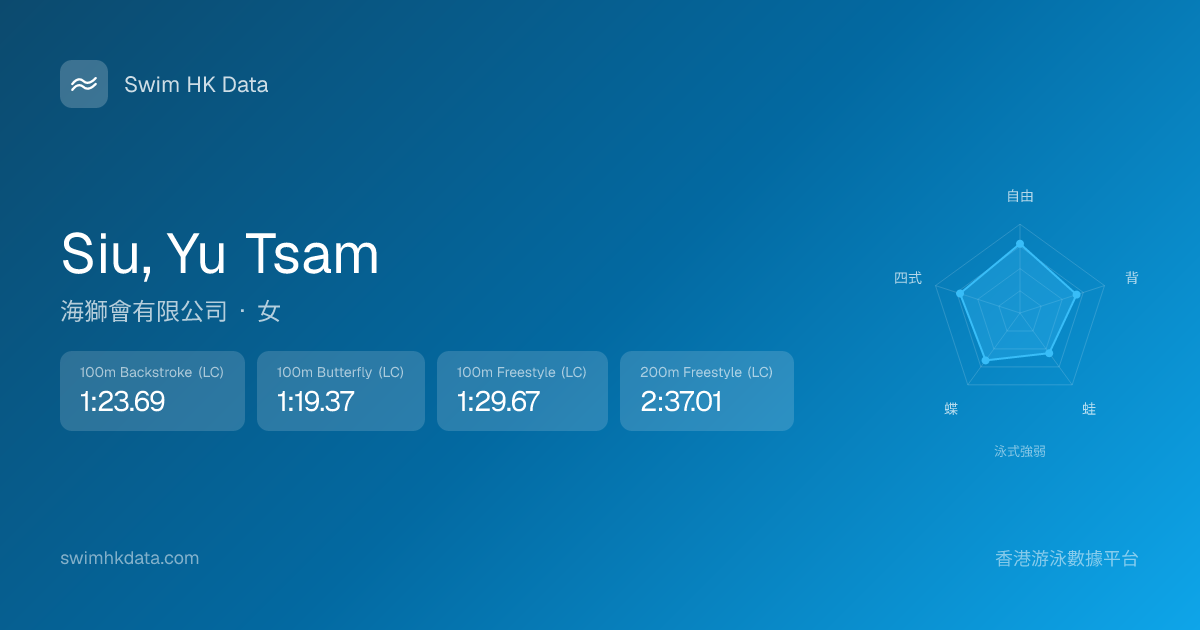 此圖表根據你所有比賽成績計算,顯示你在各泳式的相對強弱,僅供參考。繼續努力,每一次練習都會讓你更快更強!💪