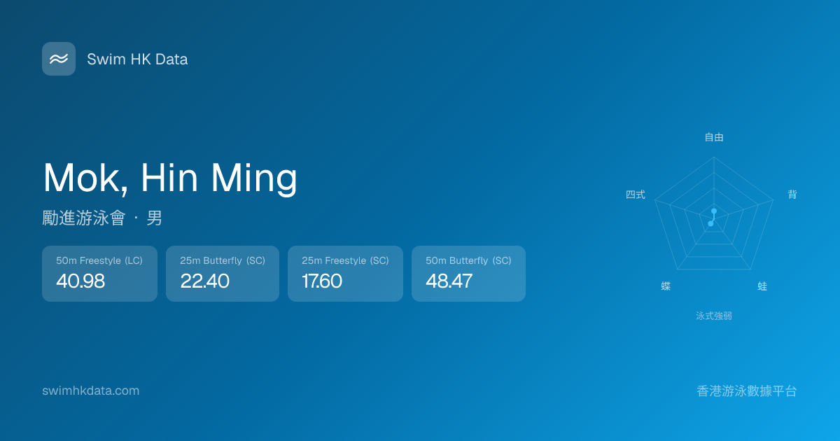 此圖表根據你所有比賽成績計算,顯示你在各泳式的相對強弱,僅供參考。繼續努力,每一次練習都會讓你更快更強!💪