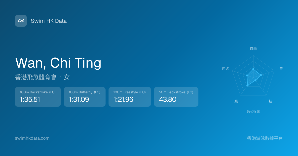 此圖表根據你所有比賽成績計算,顯示你在各泳式的相對強弱,僅供參考。繼續努力,每一次練習都會讓你更快更強!💪