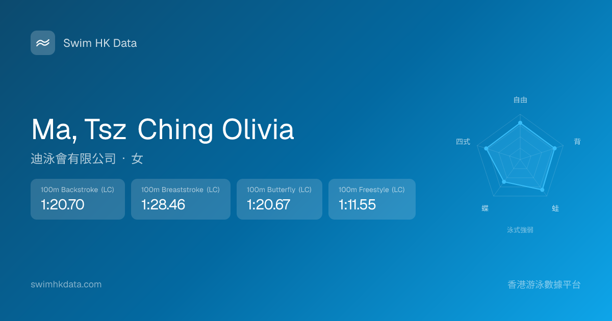 此圖表根據你所有比賽成績計算,顯示你在各泳式的相對強弱,僅供參考。繼續努力,每一次練習都會讓你更快更強!💪