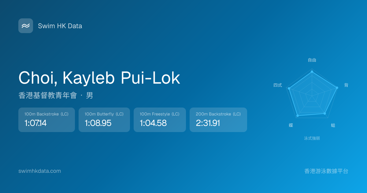 此圖表根據你所有比賽成績計算,顯示你在各泳式的相對強弱,僅供參考。繼續努力,每一次練習都會讓你更快更強!💪