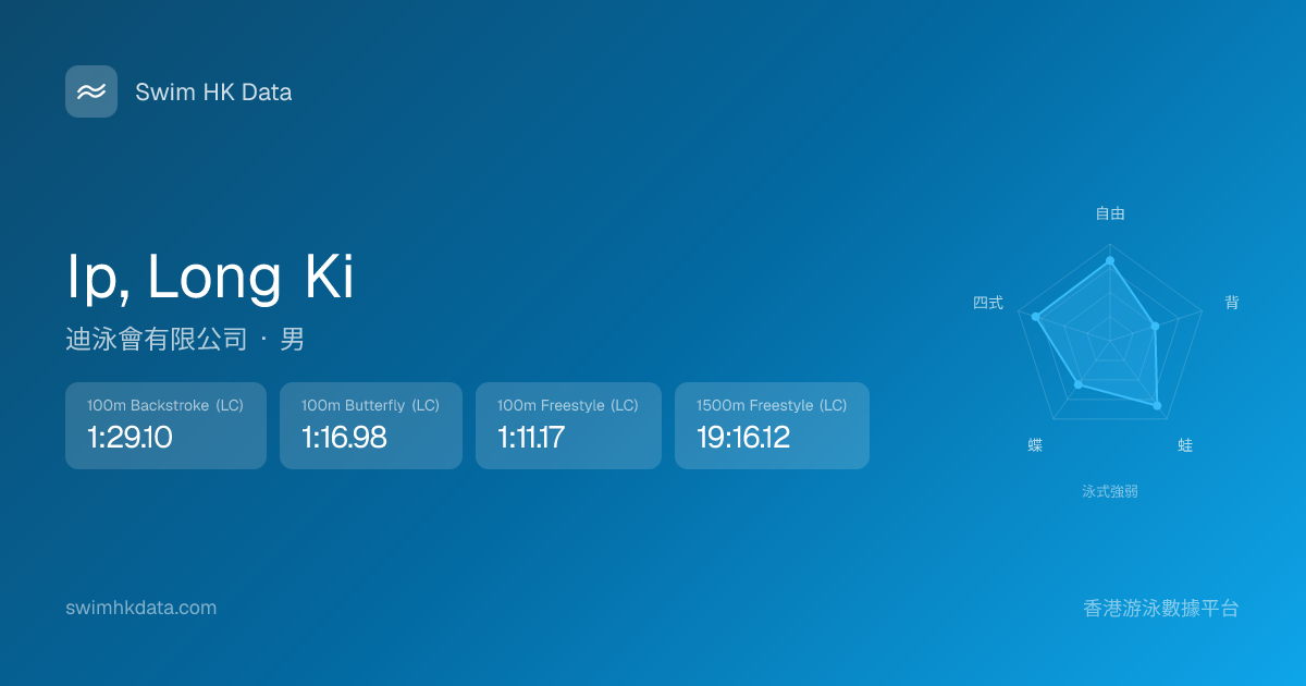 此圖表根據你所有比賽成績計算,顯示你在各泳式的相對強弱,僅供參考。繼續努力,每一次練習都會讓你更快更強!💪