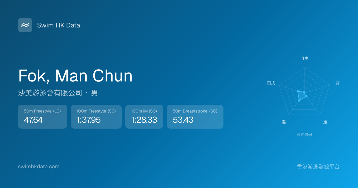 此圖表根據你所有比賽成績計算,顯示你在各泳式的相對強弱,僅供參考。繼續努力,每一次練習都會讓你更快更強!💪