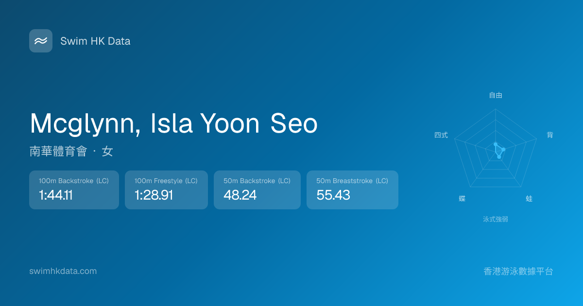 此圖表根據你所有比賽成績計算,顯示你在各泳式的相對強弱,僅供參考。繼續努力,每一次練習都會讓你更快更強!💪
