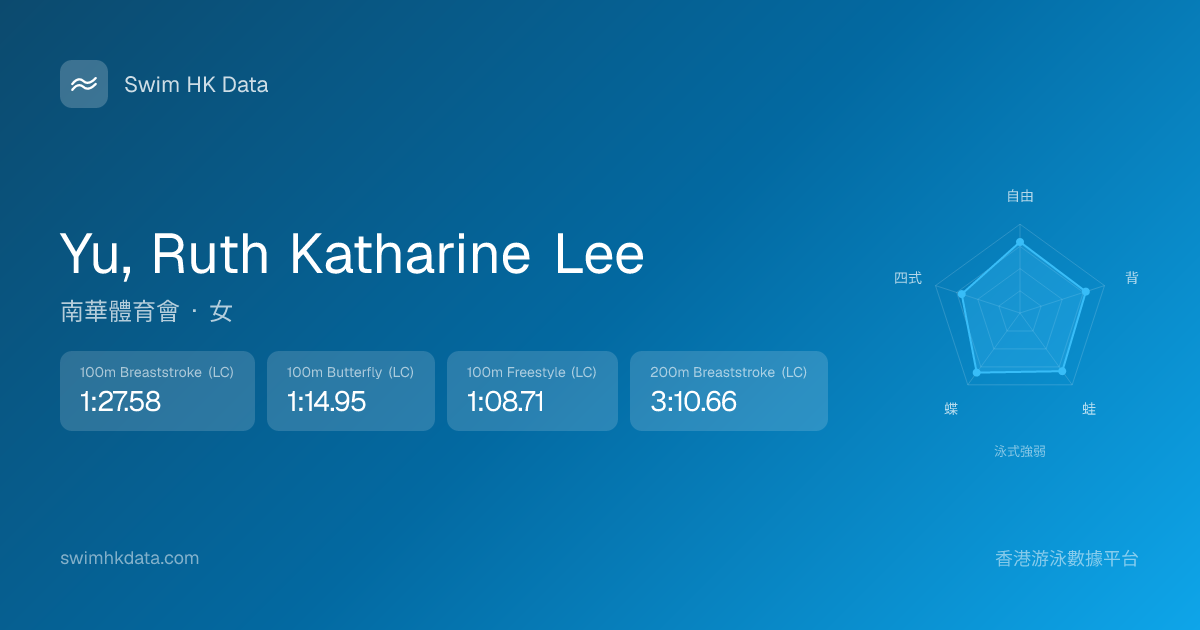 此圖表根據你所有比賽成績計算,顯示你在各泳式的相對強弱,僅供參考。繼續努力,每一次練習都會讓你更快更強!💪