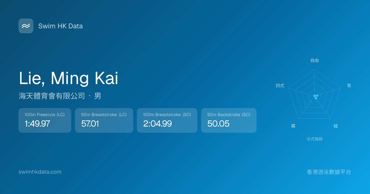 此圖表根據你所有比賽成績計算,顯示你在各泳式的相對強弱,僅供參考。繼續努力,每一次練習都會讓你更快更強!💪