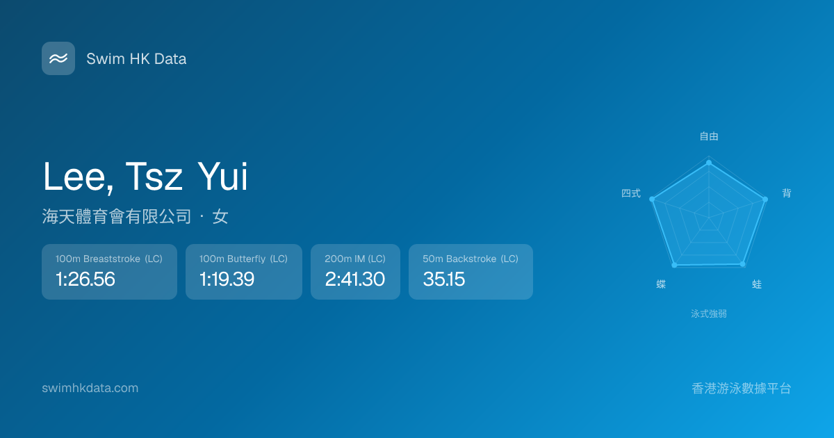 此圖表根據你所有比賽成績計算,顯示你在各泳式的相對強弱,僅供參考。繼續努力,每一次練習都會讓你更快更強!💪