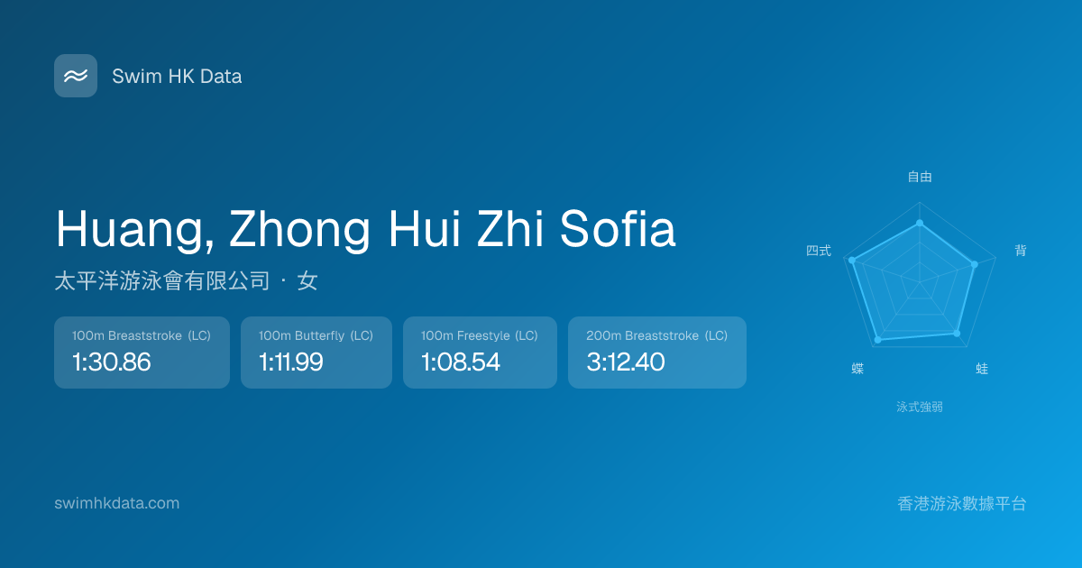 此圖表根據你所有比賽成績計算,顯示你在各泳式的相對強弱,僅供參考。繼續努力,每一次練習都會讓你更快更強!💪