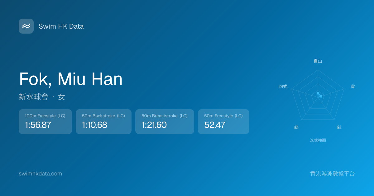 此圖表根據你所有比賽成績計算,顯示你在各泳式的相對強弱,僅供參考。繼續努力,每一次練習都會讓你更快更強!💪