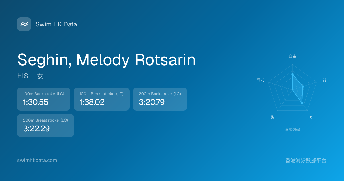 此圖表根據你所有比賽成績計算,顯示你在各泳式的相對強弱,僅供參考。繼續努力,每一次練習都會讓你更快更強!💪