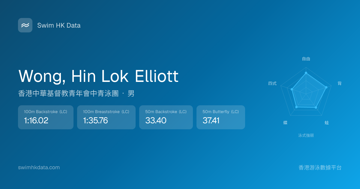 此圖表根據你所有比賽成績計算,顯示你在各泳式的相對強弱,僅供參考。繼續努力,每一次練習都會讓你更快更強!💪