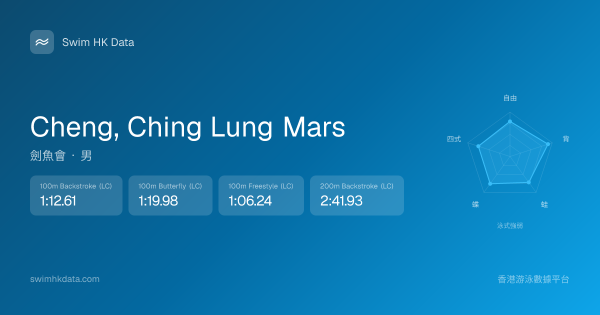 此圖表根據你所有比賽成績計算,顯示你在各泳式的相對強弱,僅供參考。繼續努力,每一次練習都會讓你更快更強!💪