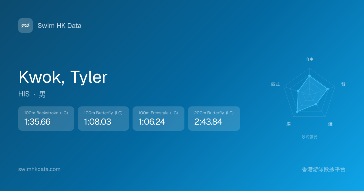 此圖表根據你所有比賽成績計算,顯示你在各泳式的相對強弱,僅供參考。繼續努力,每一次練習都會讓你更快更強!💪