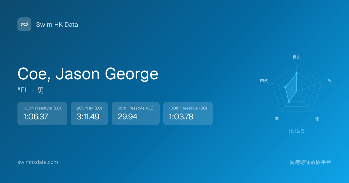 此圖表根據你所有比賽成績計算,顯示你在各泳式的相對強弱,僅供參考。繼續努力,每一次練習都會讓你更快更強!💪