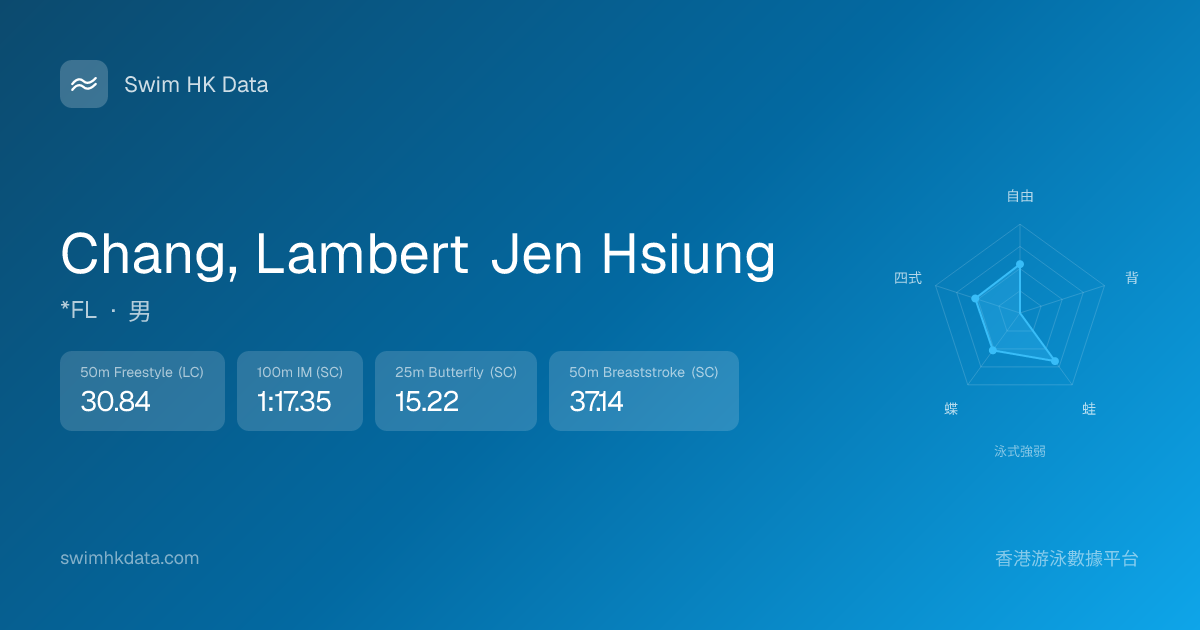 此圖表根據你所有比賽成績計算,顯示你在各泳式的相對強弱,僅供參考。繼續努力,每一次練習都會讓你更快更強!💪