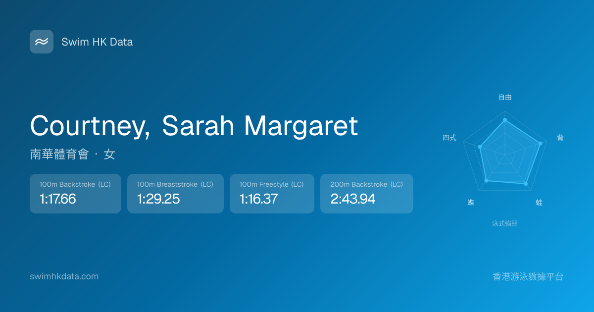 此圖表根據你所有比賽成績計算,顯示你在各泳式的相對強弱,僅供參考。繼續努力,每一次練習都會讓你更快更強!💪