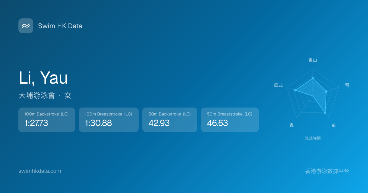 此圖表根據你所有比賽成績計算,顯示你在各泳式的相對強弱,僅供參考。繼續努力,每一次練習都會讓你更快更強!💪