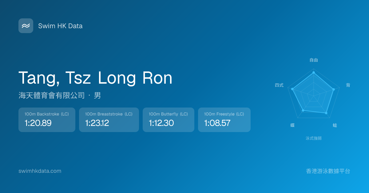 此圖表根據你所有比賽成績計算,顯示你在各泳式的相對強弱,僅供參考。繼續努力,每一次練習都會讓你更快更強!💪
