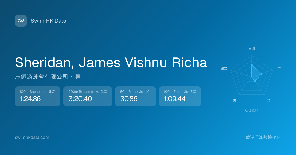 此圖表根據你所有比賽成績計算,顯示你在各泳式的相對強弱,僅供參考。繼續努力,每一次練習都會讓你更快更強!💪