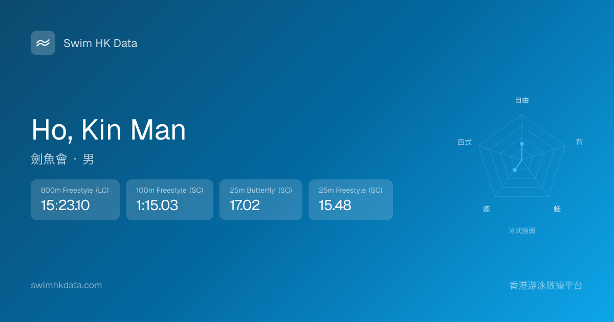 此圖表根據你所有比賽成績計算,顯示你在各泳式的相對強弱,僅供參考。繼續努力,每一次練習都會讓你更快更強!💪