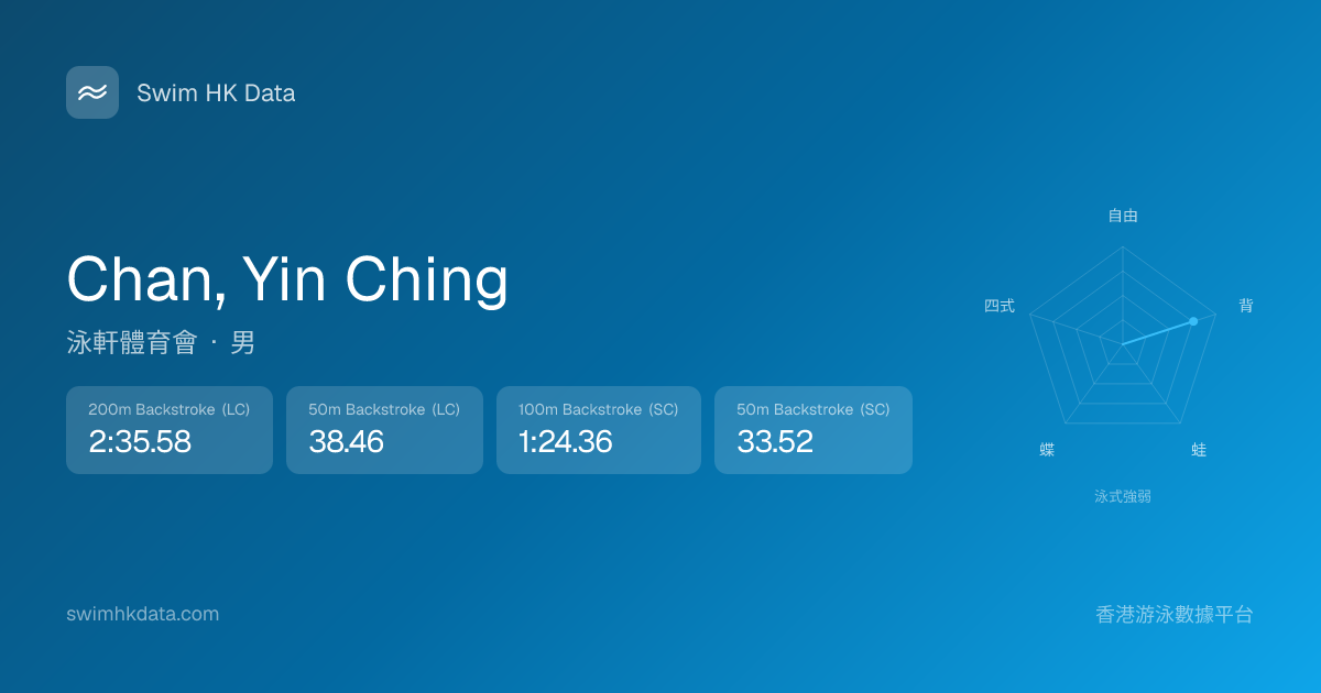 此圖表根據你所有比賽成績計算,顯示你在各泳式的相對強弱,僅供參考。繼續努力,每一次練習都會讓你更快更強!💪