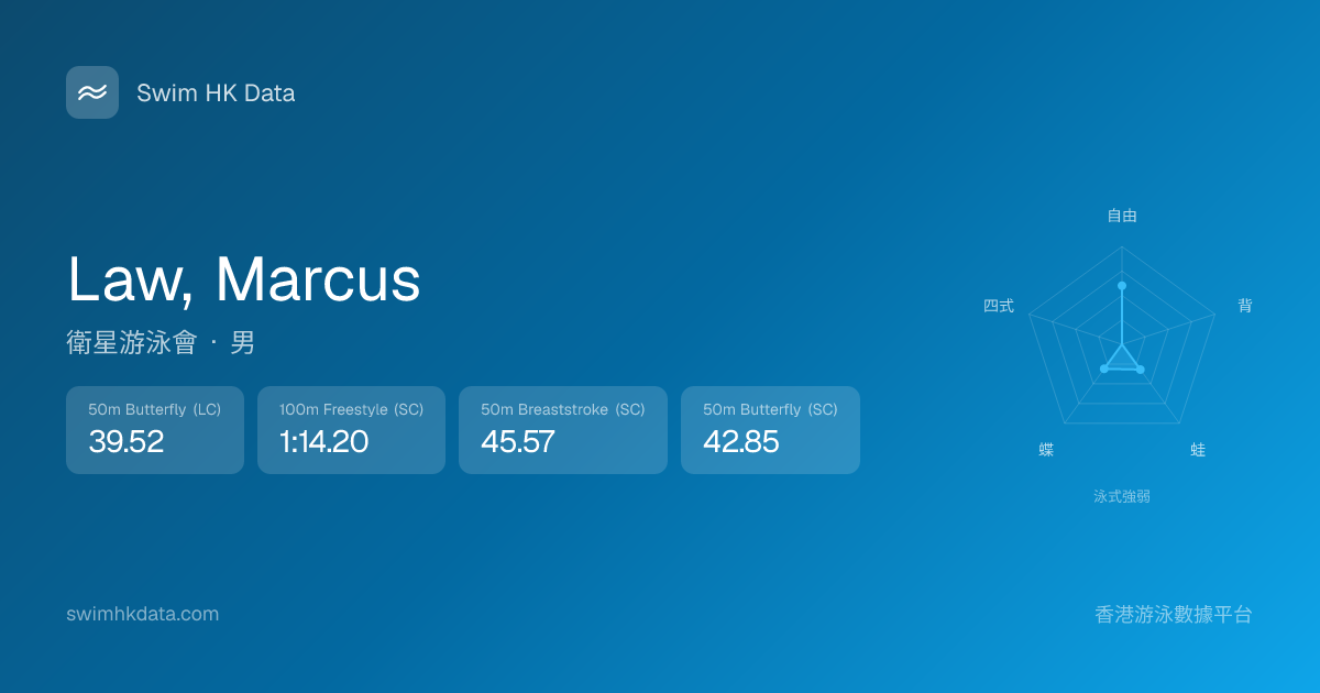 此圖表根據你所有比賽成績計算,顯示你在各泳式的相對強弱,僅供參考。繼續努力,每一次練習都會讓你更快更強!💪