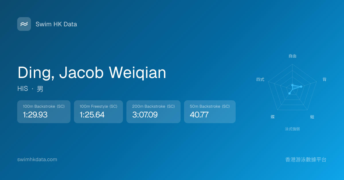 此圖表根據你所有比賽成績計算,顯示你在各泳式的相對強弱,僅供參考。繼續努力,每一次練習都會讓你更快更強!💪