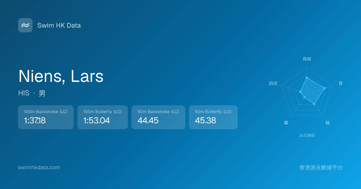 此圖表根據你所有比賽成績計算,顯示你在各泳式的相對強弱,僅供參考。繼續努力,每一次練習都會讓你更快更強!💪