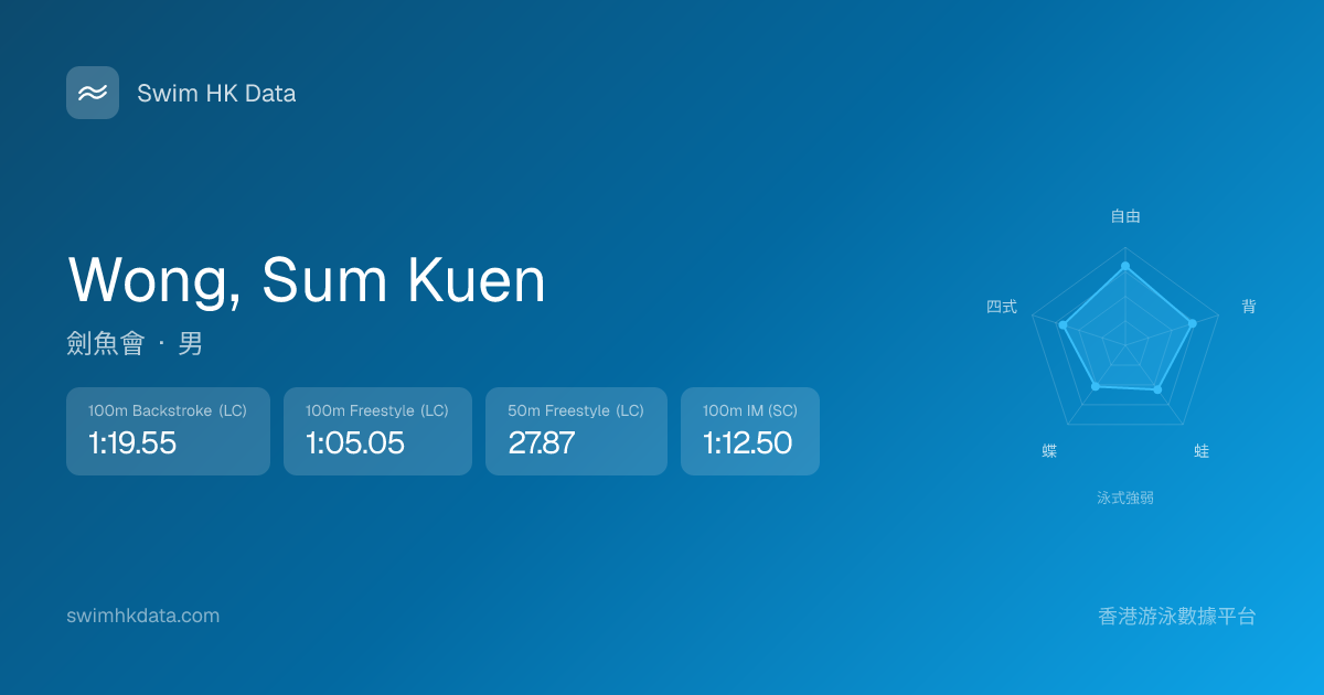 此圖表根據你所有比賽成績計算,顯示你在各泳式的相對強弱,僅供參考。繼續努力,每一次練習都會讓你更快更強!💪
