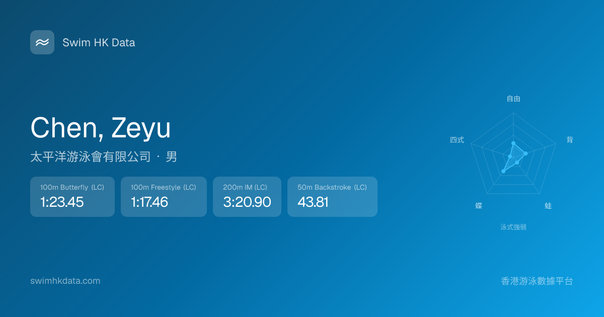 此圖表根據你所有比賽成績計算,顯示你在各泳式的相對強弱,僅供參考。繼續努力,每一次練習都會讓你更快更強!💪