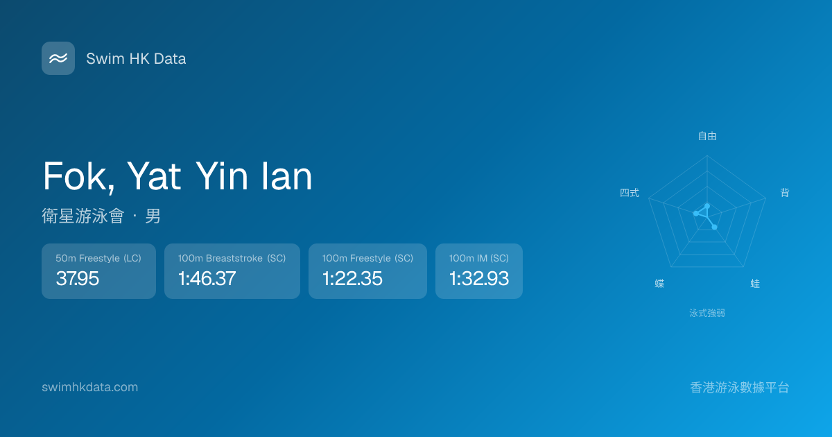此圖表根據你所有比賽成績計算,顯示你在各泳式的相對強弱,僅供參考。繼續努力,每一次練習都會讓你更快更強!💪