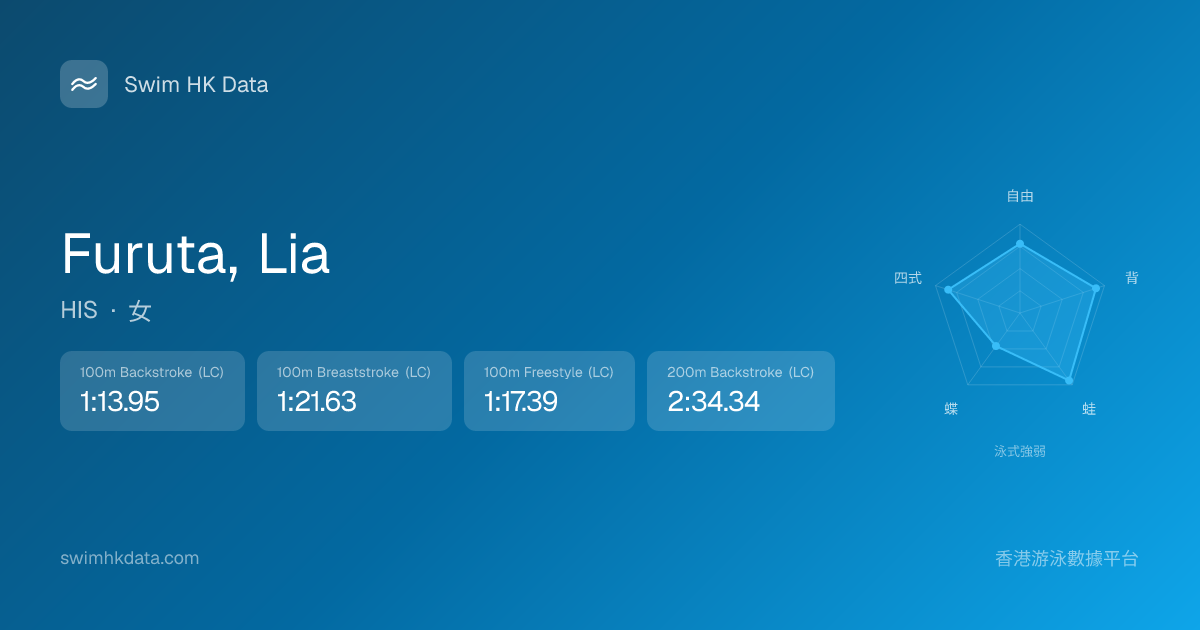 此圖表根據你所有比賽成績計算,顯示你在各泳式的相對強弱,僅供參考。繼續努力,每一次練習都會讓你更快更強!💪