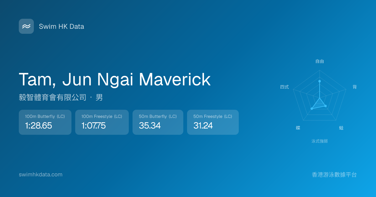此圖表根據你所有比賽成績計算,顯示你在各泳式的相對強弱,僅供參考。繼續努力,每一次練習都會讓你更快更強!💪