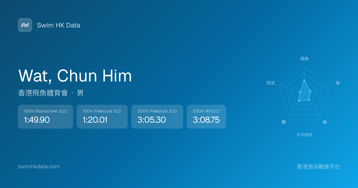 此圖表根據你所有比賽成績計算,顯示你在各泳式的相對強弱,僅供參考。繼續努力,每一次練習都會讓你更快更強!💪