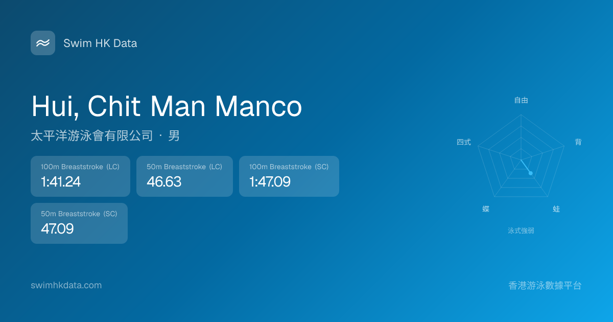 此圖表根據你所有比賽成績計算,顯示你在各泳式的相對強弱,僅供參考。繼續努力,每一次練習都會讓你更快更強!💪