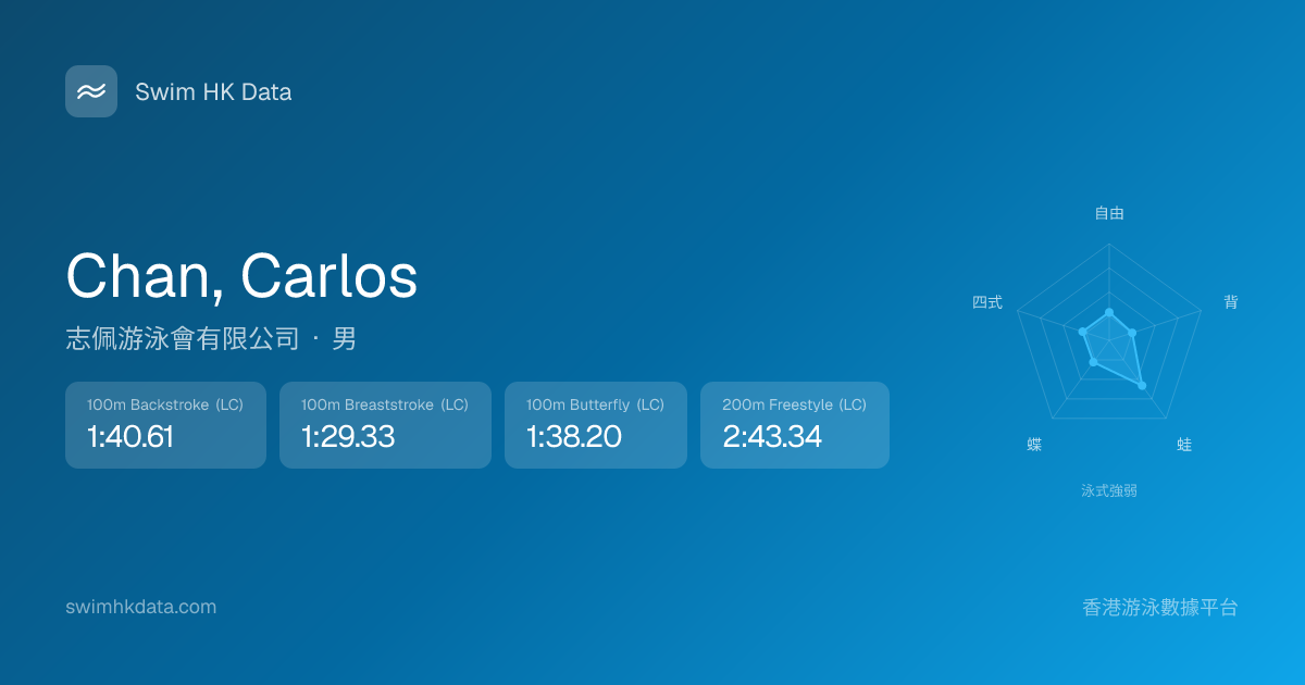 此圖表根據你所有比賽成績計算,顯示你在各泳式的相對強弱,僅供參考。繼續努力,每一次練習都會讓你更快更強!💪