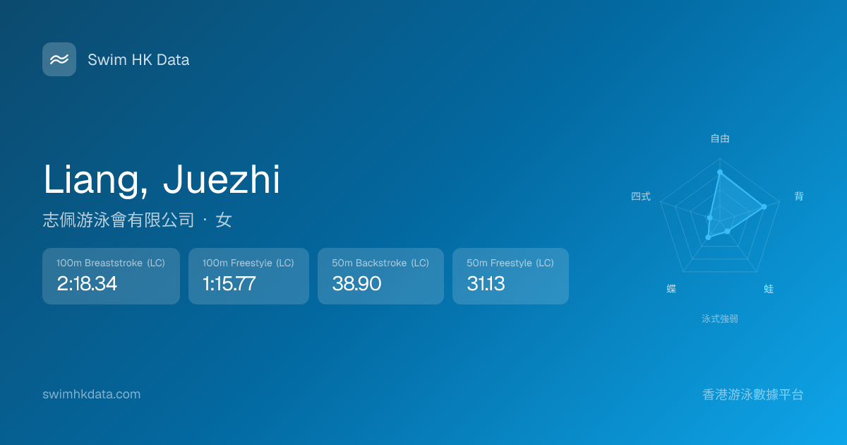 此圖表根據你所有比賽成績計算,顯示你在各泳式的相對強弱,僅供參考。繼續努力,每一次練習都會讓你更快更強!💪