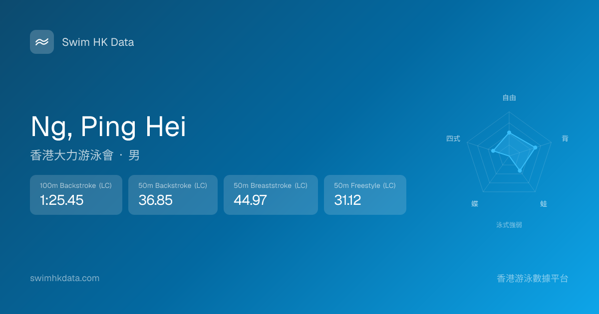 此圖表根據你所有比賽成績計算,顯示你在各泳式的相對強弱,僅供參考。繼續努力,每一次練習都會讓你更快更強!💪