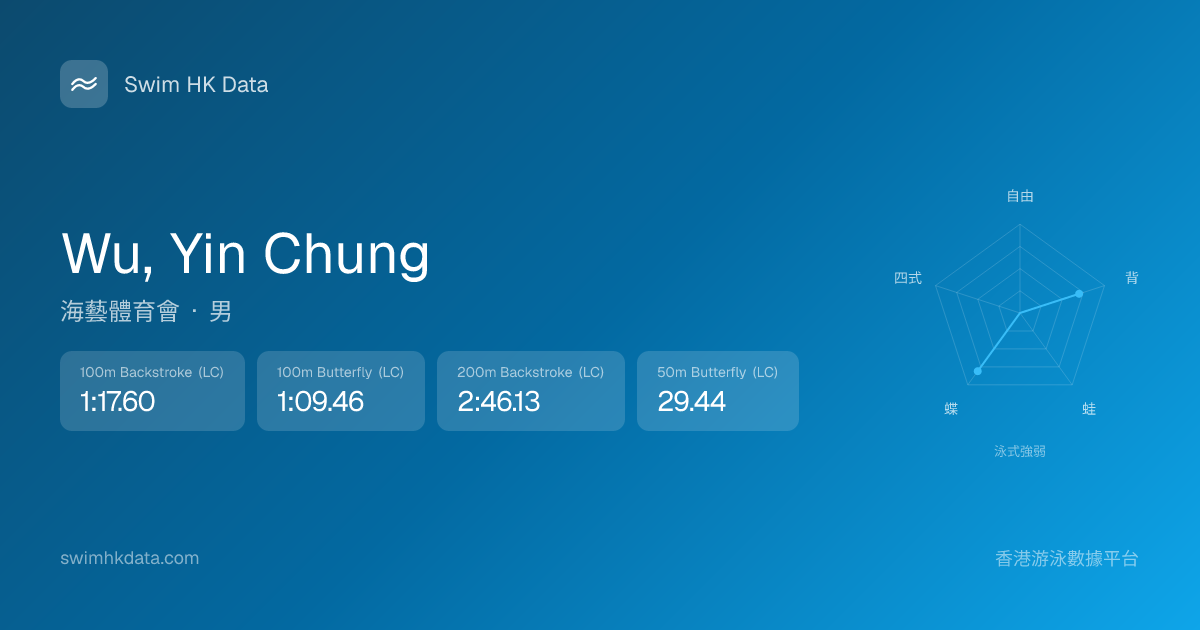 此圖表根據你所有比賽成績計算,顯示你在各泳式的相對強弱,僅供參考。繼續努力,每一次練習都會讓你更快更強!💪