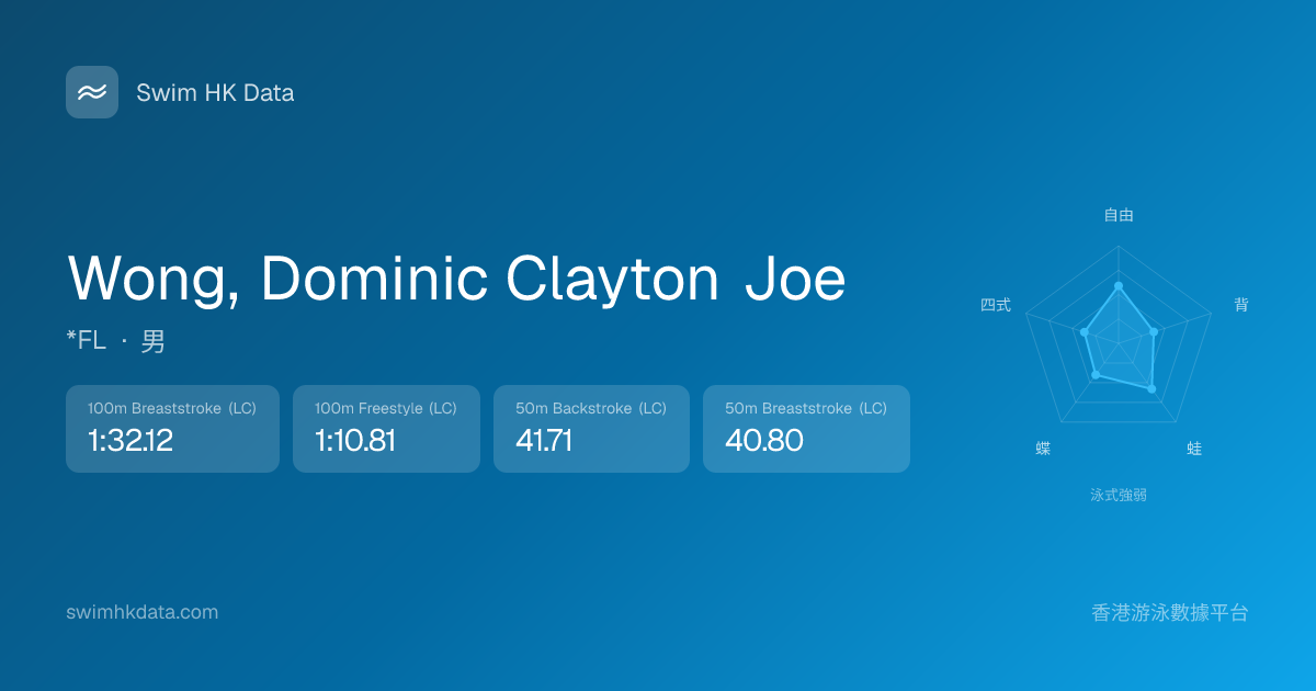 此圖表根據你所有比賽成績計算,顯示你在各泳式的相對強弱,僅供參考。繼續努力,每一次練習都會讓你更快更強!💪